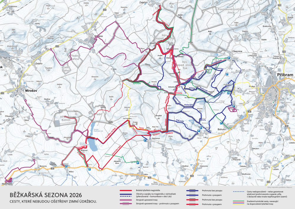 Aby bylo plánování zimních výletů co nejjednodušší, přikládáme aktuální mapu běžkařských tratí v Brdech.