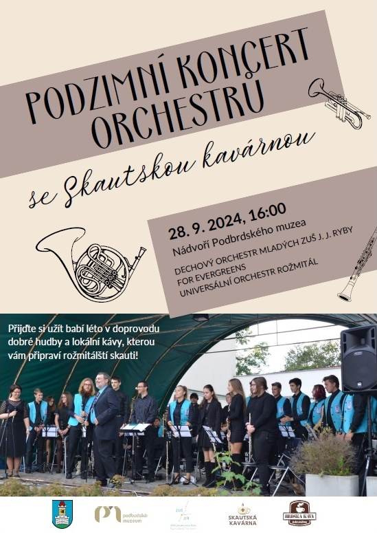 Na nádvoří Podbrdského muzea se bude konat 28. září od 16:00 Podzimní koncert orchestrů se Skautskou kavárnou.