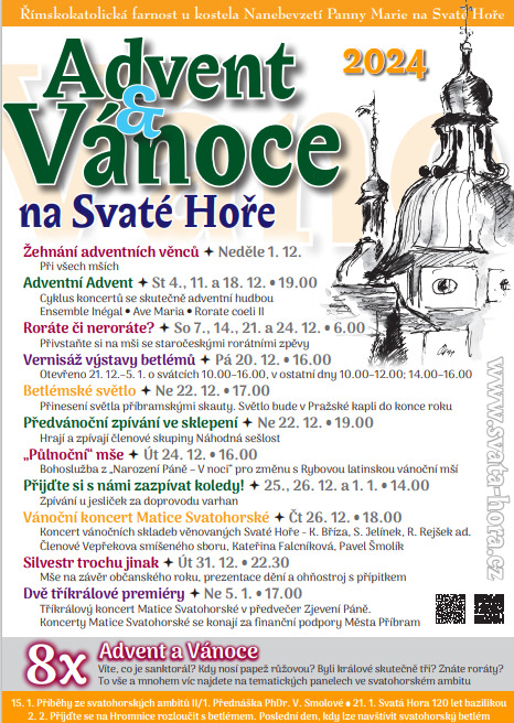 Půlnoční mše svatá v bazilice na Svaté Hoře.