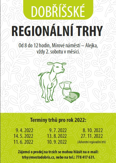 Zapište si tedy do svých kalendářů termíny Dobříšských regionálních trhů 2022 a přijďte si užít jejich jedinečnou atmosféru s námi: 9. 4., 14. 5., 11. 6., 9. 7., 13. 8., 10. 9. a 8. 10. Také letos se můžete těšit na mimořádný adventní regionální trh, který se uskuteční v neděli 27. 11.