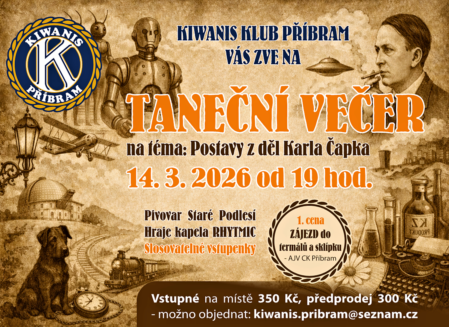 Spolek Kiwanis zve na Taneční večer do Pivovaru Podlesí na téma: postavy z děl Karla Čapka
